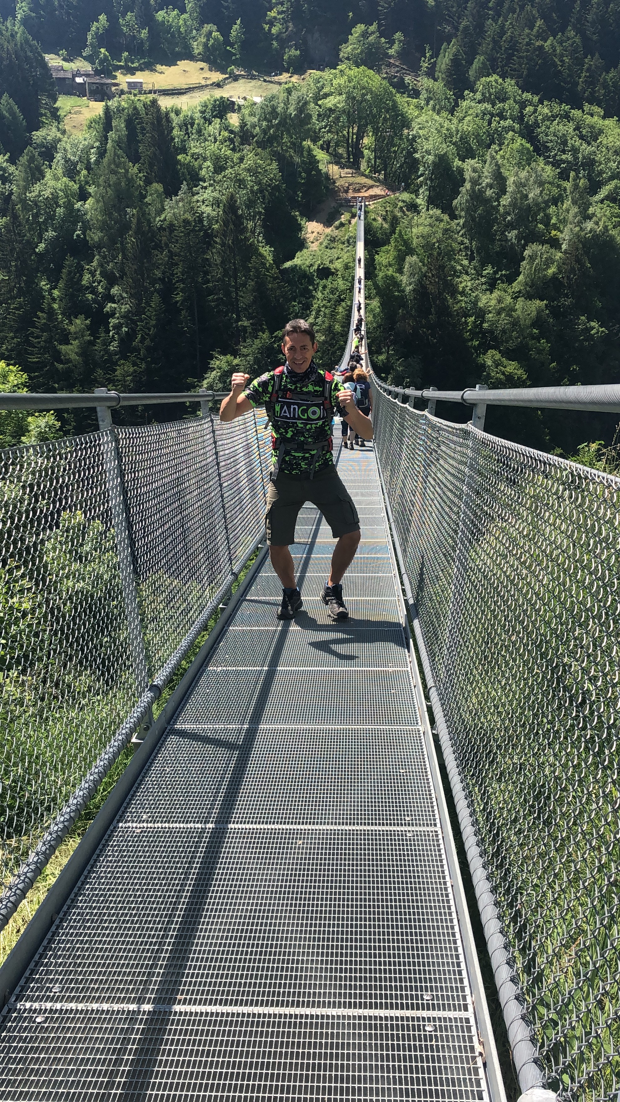 Alla Pinkie poco temeraria quale sono, da una parte entusiasmava la cosa, dall’altra, col vomitino facile, non avevo idea di come avrei reagito, MA, chi non risica……. ed eccomi che m i trovo a passeggiare sul ponte dondolante ed ammirare un panorama unico: le montagne, la verde vallata del Tartano, la diga di Colombera e il fondovalle della Valtellina che culmina nel mio meraviglioso lago di Como.
